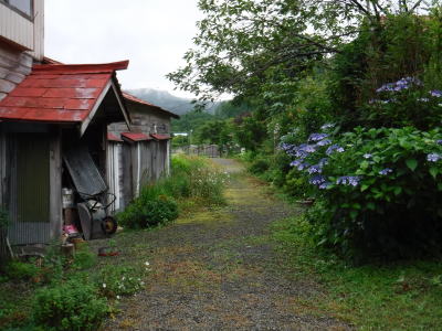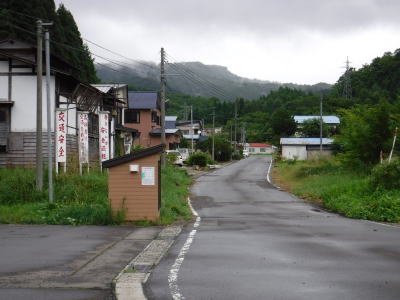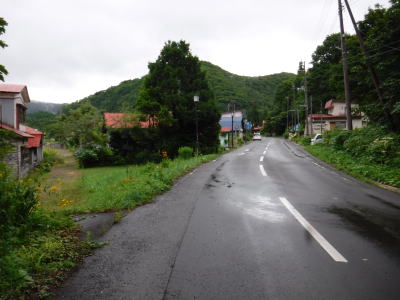 軌道跡はちょっと寂しげな湯野川集落の中を通り、いよいよ山間地帯へ進みます。 |