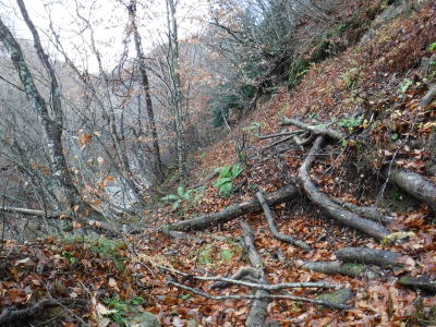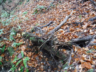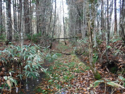 | なお、砥石沢支線の調査も行いましたが、本線との分岐点から500mほど進むと倒木のため進めなくなっていたので、引き返しました。 | ||
