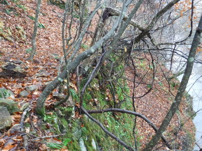 | 県道を経由して湯野川上流から回り込み、軌道跡を確認しました。 | ||