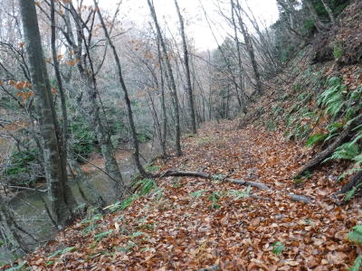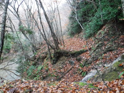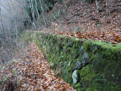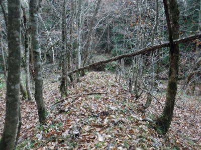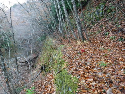 | 沢を渡った先は、石垣で補強された路盤が一直線に続いていました。 | ||