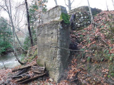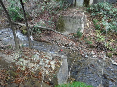 | 途中の川を渡る箇所に怪しいコンクリの塊が落ちていましたが、遺構と関係ないかな? | ![]() |