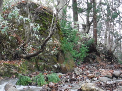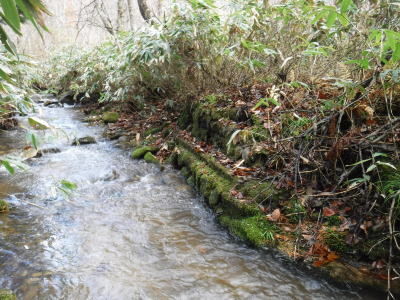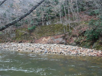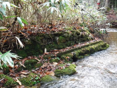 | 上流方向から起点方向に戻って進み撮影しました。こちらにも石垣が見られました。 | ||