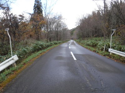 | 軌道跡はまだまだ続きますが、いったん県道に戻って進みます。 | |