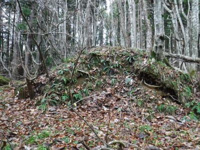 | 続いて上重兵衛沢を渡りますが、ここには石垣の橋台しか残されていませんでした。 | ||