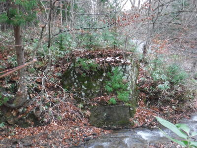 田ノ沢を渡る橋の下を見ると、橋台跡が残されていました。 |