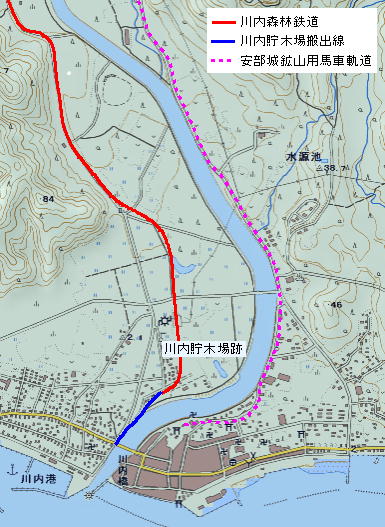 | 川内川の河口からスタートです。 地図に記載していますが、大正時代には川内川左岸に安部城鉱山の専用軌道が敷設されていました。 |